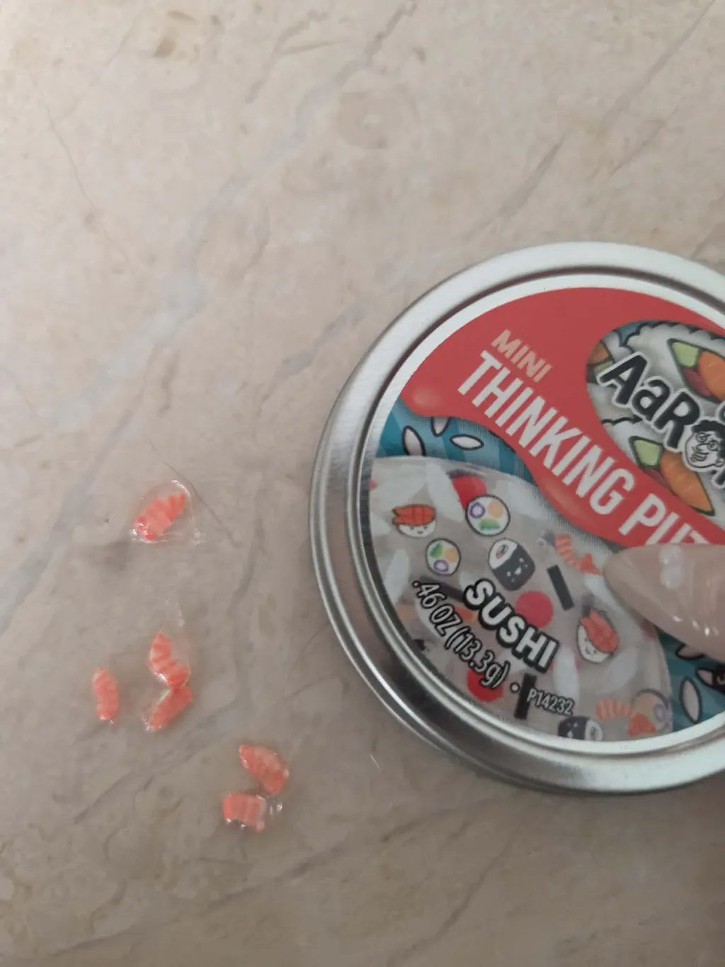 Indulge your cravings with this amazing Mini Tin of Thinking Putty™ Sushi. Includes ginger scented putty & sushi themed pieces like rice, nigiri, sushi and rolls.